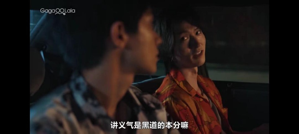 比如花心:三代目年轻的时候也是个帅哥,一生风流倜傥,阅女无数,说白一点就是非常好色,所以底下的小弟对于“攻是老大私生子”的传言没有一个人怀疑过,因为大家都觉得以他的个性是真的可以做得出来。其实我不太理解为什么剧组一定要把时间背景放在当下,因为桐井组这整个黑帮看起来就完全像是从昭和年代穿越出来的老古董,大男子主义的现象(或者用时兴的话来形容,叫登味儿)特别重,还是一直认为更“男人”的男人更受女人欢迎,所以情人越多,就表示自己越man(我好像八百辈子没用过这词了),所以【风流】更像是一种勋章,所以在三代目的葬礼上,攻给一生好色情人不断的【父亲】三代目投其所好地添了个口红印(是说你们还挺会给老人家们搞投其所好这一套的,我上一场看到“如此投其所好”的葬礼节目好像还是《靛蓝色的心情》的灵堂doi,当然更久远一点的还有全家人一起弹着尤克里里给逝者唱歌之类的),